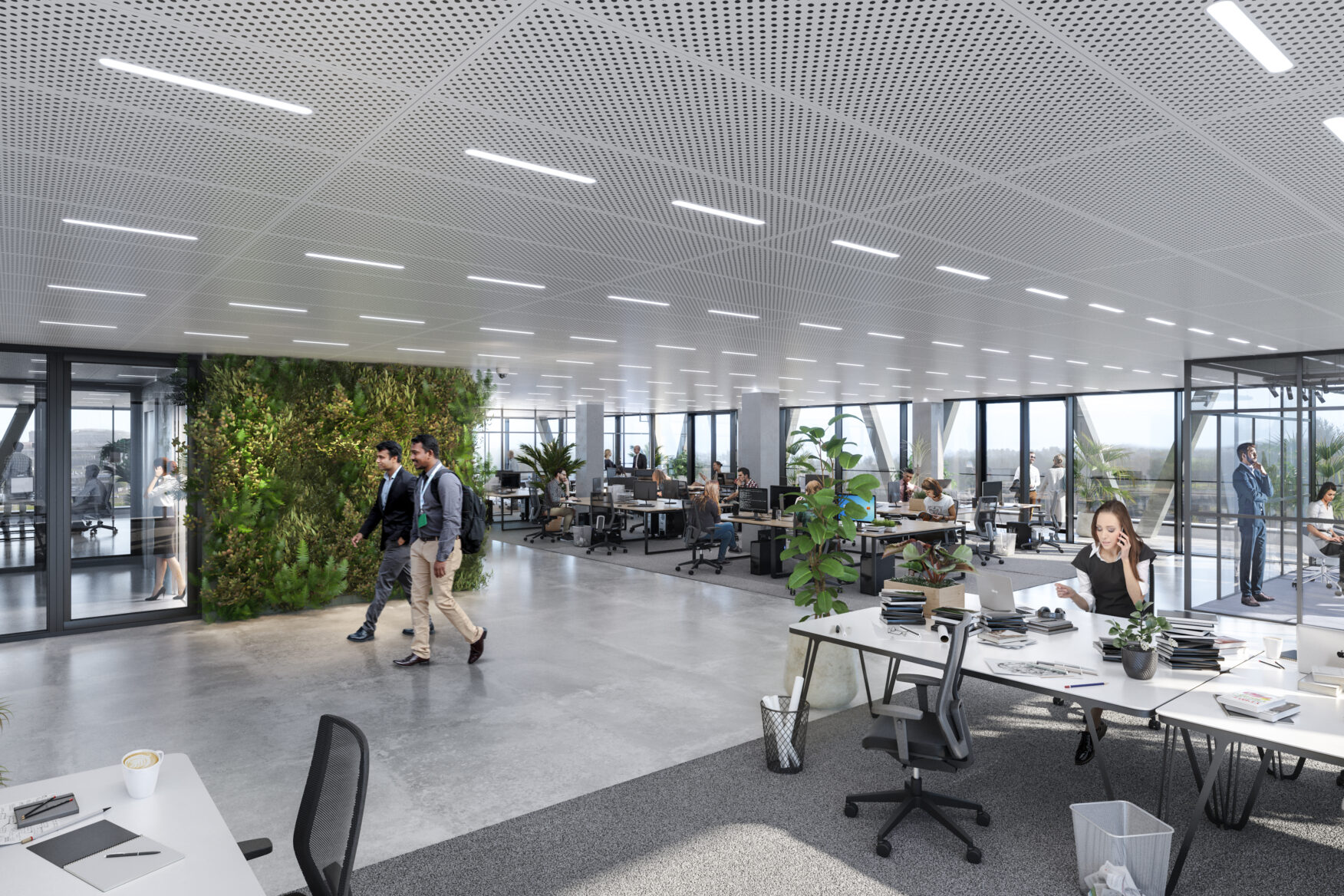 - Een modern en zeer duurzaam gebouw met veel natuurlijk lichtinval en groene longen